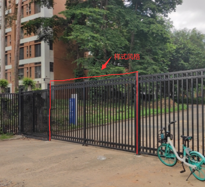 | 5 | 安裝(zhuāng)活動門 | 1、寬6000mm*高2200mm,內雙開門。 2、立柱采用140mm*140mm*4mm鍍鋅方(fāng)管(guǎn),門骨(gǔ)架采用50mm*50mm*2mm鍍鋅方管,門扇骨架采用40mm*40mm*2mm鍍鋅方管(guǎn),表麵塗刷黑色氟碳(tàn)漆3道。 3、門扇底部(bù)安(ān)裝單滑輪,避免門扇懸掛於立柱上 4、清理(lǐ)門(mén)扇開啟範圍內的雜物,路沿石、圍網等必要移位處理,滿足正常使用。 | 扇 | 2 | 位置2#冷站的前後門(mén)出入(rù)口 |