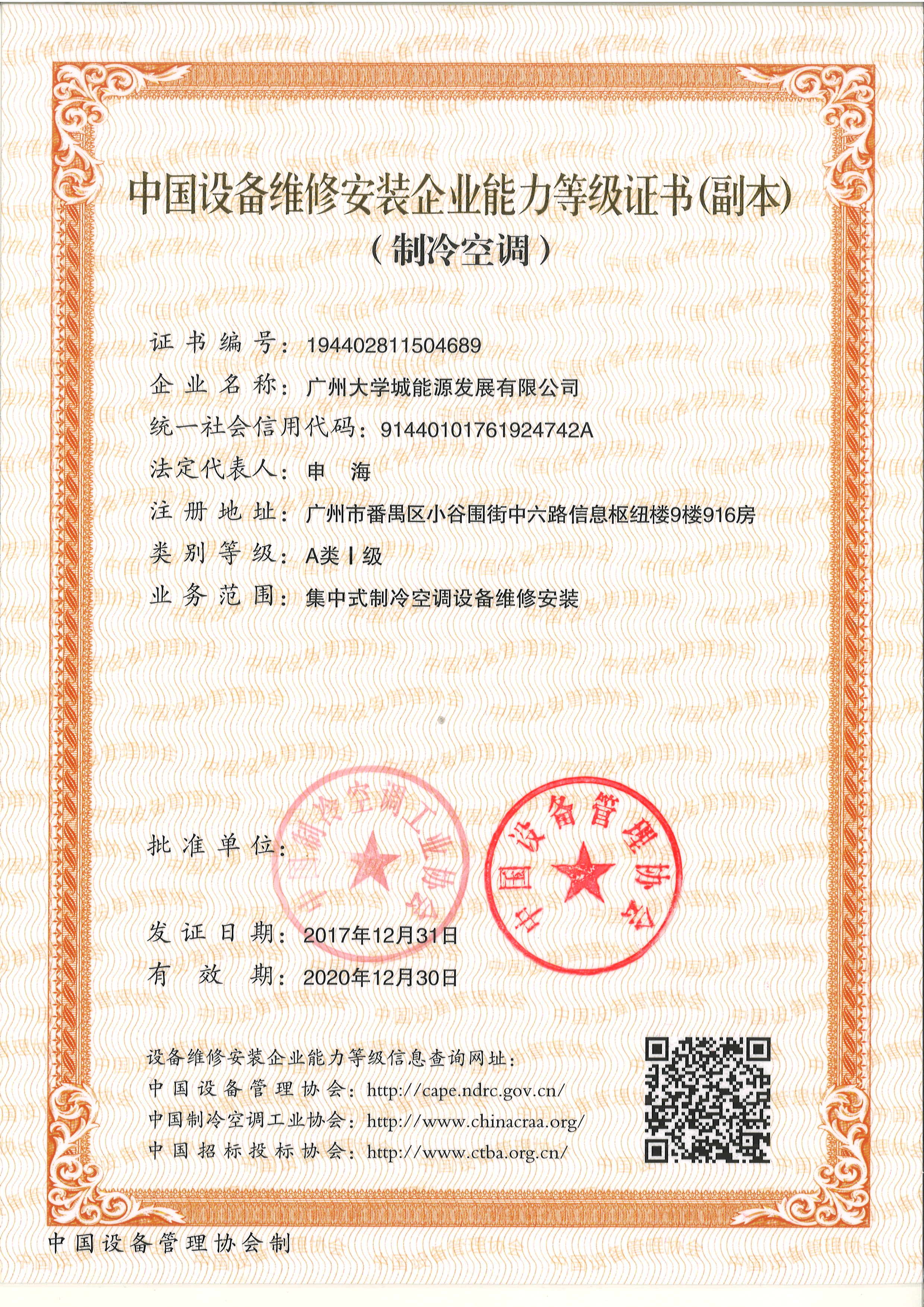 能源公司製(zhì)冷空調行(háng)業一級維修資...