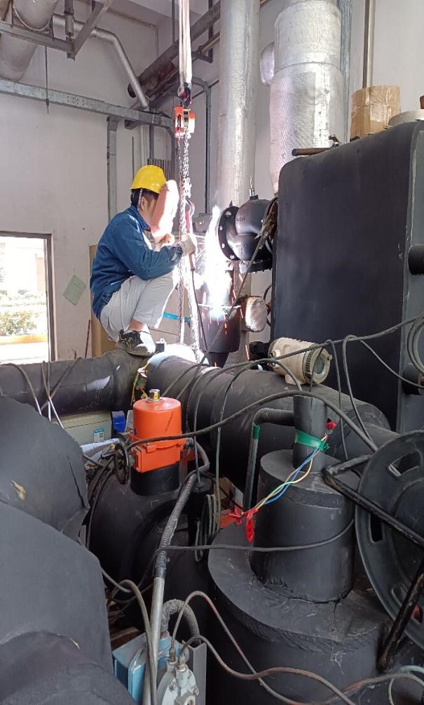 近期順利完成對星海校區(qū)約1200台風機盤管的供回水管道升級改造,成(chéng)功(gōng)更換廣州大(dà)學電子學院空調電動調(diào)節(jiē)閥,更換的(de)每個閥門重達300多斤,安裝高度接近2米,現場施(shī)工環境狹窄(zhǎi),維保人(rén)員克服困難順利(lì)完工。調節閥更(gèng)換後可根據用戶需求自動調節流量大小,有(yǒu)效保障(zhàng)供(gòng)冷穩定性,提升客戶用冷(lěng)體驗。