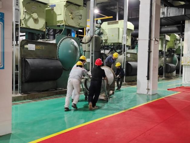三號站主機(jī)自投用至今已近20年,在(zài)運行過程中(zhōng)出現的(de)故障較多,城投能源公司在2月開展三號站主機軸承維保,配(pèi)合外委單位安全(quán)高效完成(chéng)了材料設(shè)備高空吊裝工作,通過拆卸(xiè)、重建、組裝等一係列操作,順利完成主(zhǔ)機軸承更換(huàn),以保障供冷高峰期間(jiān)主機的安全(quán)平穩運(yùn)行。