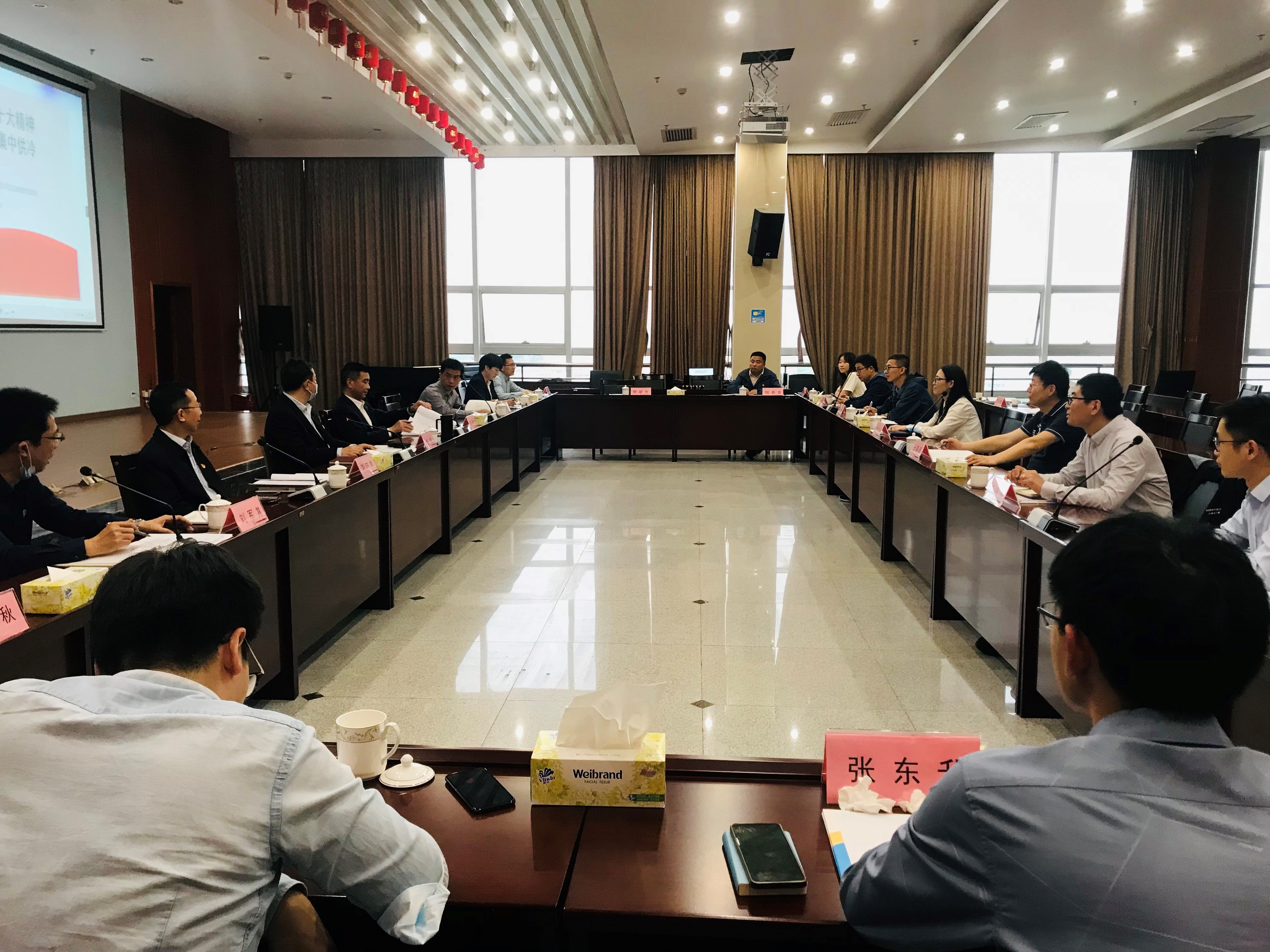 座談交流謀發展。在城投能源公司黨員活動室,觀看了城投能源公司黨支部喜迎二十大黨建工作宣傳視頻《溫度的守護》和前(qián)海能源公司視頻宣傳片,雙方(fāng)分別介紹了黨支部建設基本情況、亮點工作以及企(qǐ)業概(gài)況。隨後,共建雙方圍繞推動黨建工作與業務工作融合發展、區域集中供冷麵臨的(de)的困難和挑戰、節能降耗減排(pái)、生產運營維護、客戶關係維護等方麵進行深入交流探討,實現互促互進互享並(bìng)達成共識。