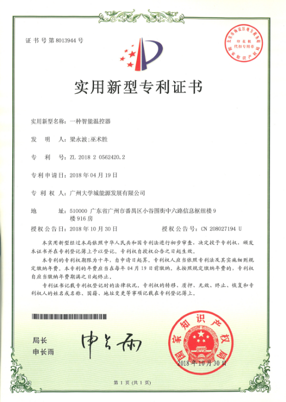 近(jìn)兩(liǎng)年,城(chéng)投能(néng)源公司錨定用戶市場(chǎng)需求,投入(rù)研發費用2000餘萬元,堅持(chí)深化“數字信息”和“智慧(huì)能源”兩大領域的創新實踐(jiàn),專注研究設備連接與智能調控,發揮信息技術、物聯網傳感技術、人工智能等新興技術戰(zhàn)略性作用(yòng),開展(zhǎn)核心技術(shù)突破攻關(guān),在溫控器領域有一定的研發成果,擁有兩項發明專利和一項實用新型專利等相關知(zhī)識產權,分別是(shì)發明專利《一(yī)種新型計費中央空調溫控器及其顯示方法》和《基於LORA通訊的中央(yāng)空調溫控器費用控(kòng)製方法及其係統》,實用(yòng)新型專利《一種智能溫控器》。