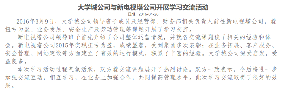2016年3月9日,榴莲视频下载官网入口公(gōng)司(sī)領導班子(zǐ)成(chéng)員及經營部、財務部相關負責人前往新電視塔(tǎ)公司,就扭虧為盈、業務發展、安全生產及勞動管(guǎn)理等課(kè)題開展了學習交流(liú)。