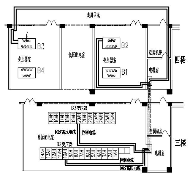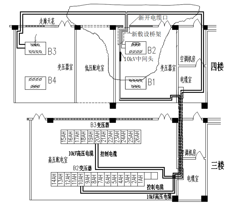 附圖2: B2、B3變壓器電纜調換(huàn)後走向圖