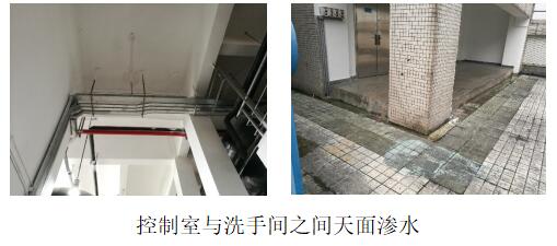 1. 更衣室天麵、控製室與洗手間之(zhī)間天麵滲水(共2處)