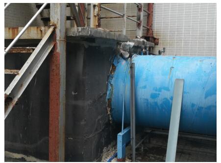 處理方案:清除(chú)現有防(fáng)水材(cái)料;防(fáng)水(shuǐ)砂漿找平;塗無(wú)機防水塗料;水泥砂漿保護層;轉角、陰角(jiǎo)處瀝青防水(shuǐ)油膏嵌縫。