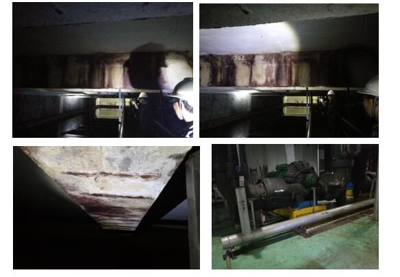 現象:滲水;混凝土表麵裂縫;局部鋼筋外露並鏽蝕。