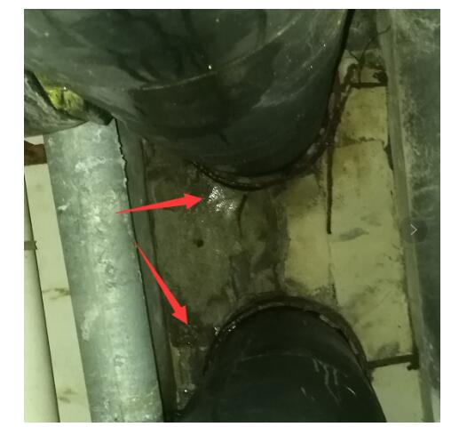 滲漏主要原因:①預埋套管生鏽,混凝土板出現裂縫;②9樓同一平麵位置為女洗(xǐ)手間。