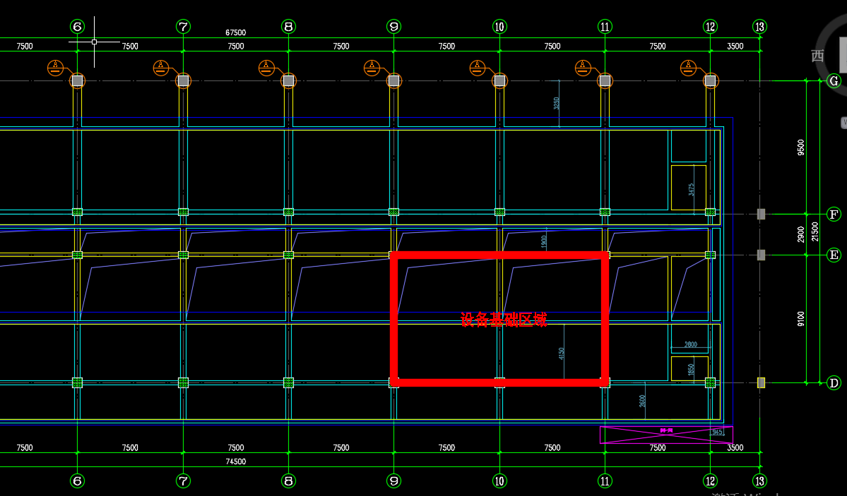 圖一 設備基礎(chǔ)網格梁平麵(miàn)位置