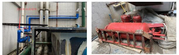 原消防給水管接駁口                                                  原消防定壓罐及(jí)水泵(利舊)