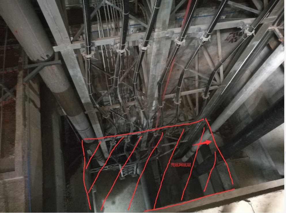 南岸電纜(lǎn)側兜底(dǐ)網底層(céng)範圍(高8.7m)